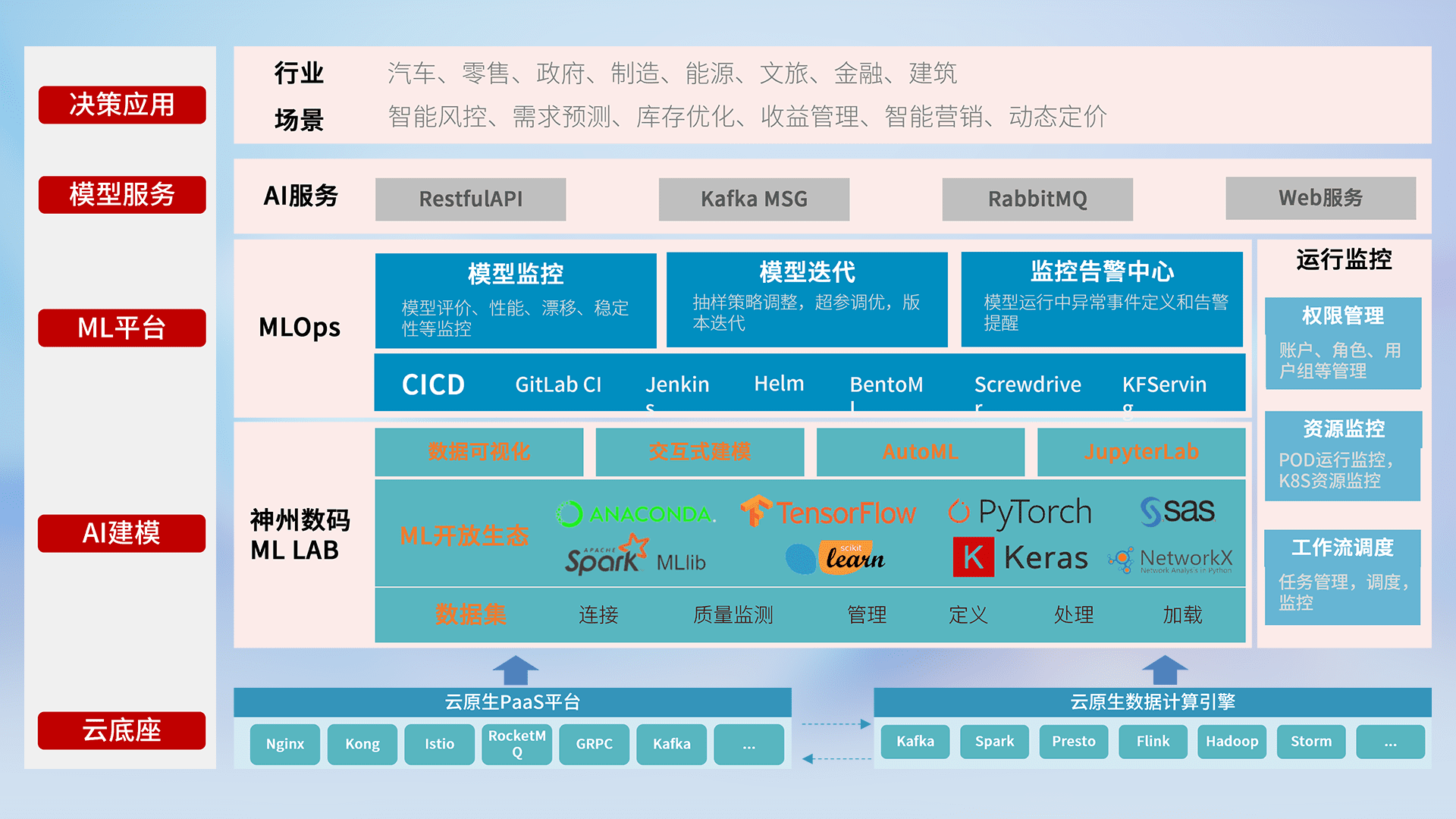 数据+模型双引擎驱动,,,面向智能服务场景,,,快速灵活利用AI技术,,支持业务决策,,助力企业智能化转型破局。。。。